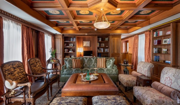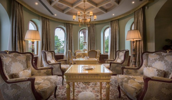 Diese Ferienvilla zum Mieten erstreckt sich über ein Grundstück von 12.400 m2 mit einer Wohnfläche von 1500 m2 und besteht aus einem Untergeschoss, Erdgeschoss, einem ersten, einem zweiten und dem dritten Stock, die durch einen Aufzug und eine Innentreppe verbunden sind.