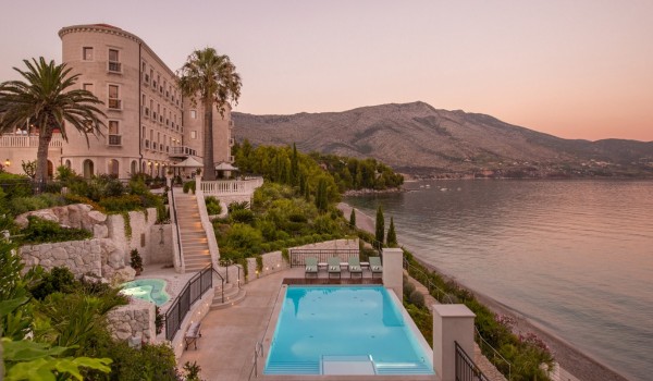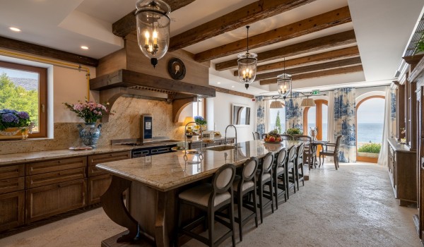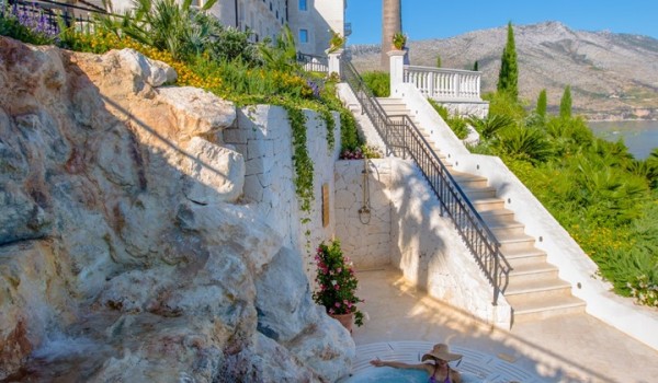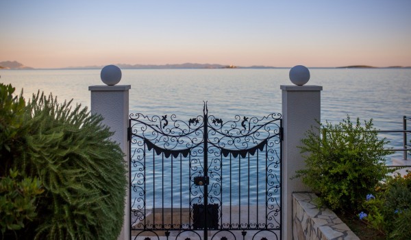 Das wunderschöne Anwesen der Luxusvilla Korta Katarina wird Sie sicherlich sprachlos machen. Nachdem Sie das Fahrzeug auf dem großzügigen Privatparkplatz über dieser Privatvilla abgestellt haben, sind Sie bereit für Sightseeing. Wenn Sie den Innenhof dieser Mietvilla besichtigen, finden Sie einen schönen Sitzbereich und überdachte Bereiche zum Essen und geselligen Beisammensein. Trotzdem wird Ihnen im Mittelpunkt sicherlich ein bezaubernder Blick auf die blau-blaue Adria stehen. Wenn wir die Steintreppe hinuntergehen, erreichen wir den Whirlpool mit Wasserfall und den von Liegestühlen umgebenen Pool. Ein paar Stufen tiefer kommen wir zu einem schmiedeeisernen Zaun mit goldenen Details, der das Grundstück mit einem wunderschönen Kiesstrand verbindet.