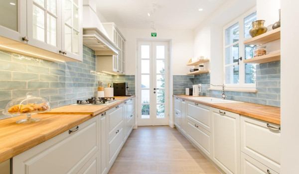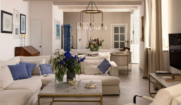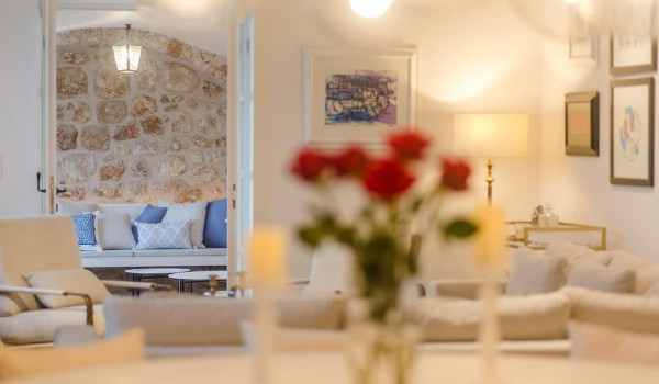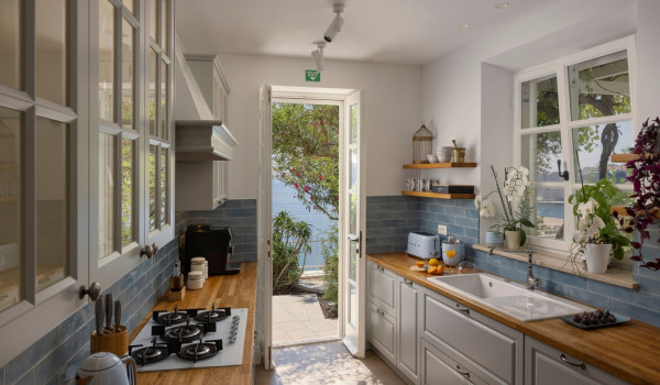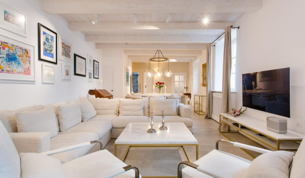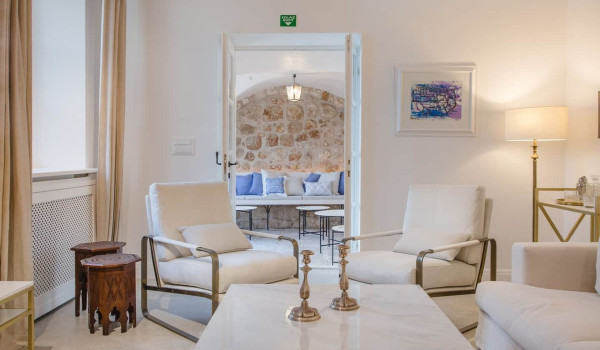 Im Erdgeschoss der Luxusvilla Opulent Dubrovnik befindet sich eine Loggia (offenes Wohnzimmer mit Meerblick), die mit dem internen Wohnzimmer verbunden ist. Hier gibt es ein bequemes weißes Ecksofa mit Sesseln und LCD-TV. Im Erdgeschoss befindet sich auch eine voll ausgestattete Küche mit direktem Zugang zur Terrasse mit Pool und Meerblick. Auf dieser Etage gibt es eine zusätzliche Toilette.