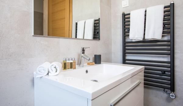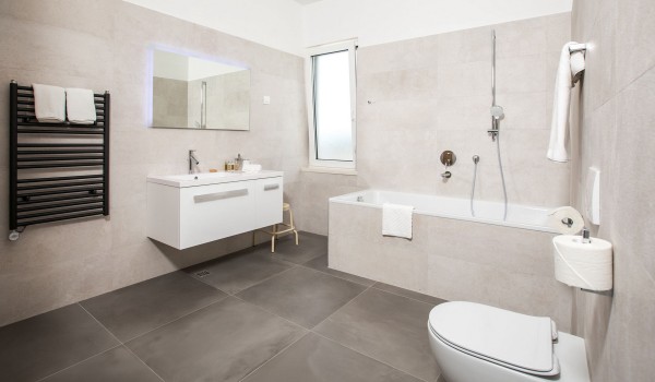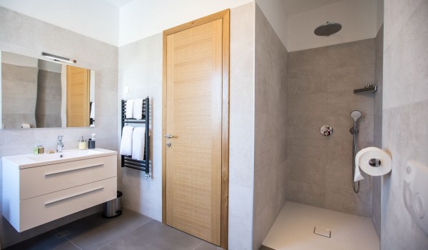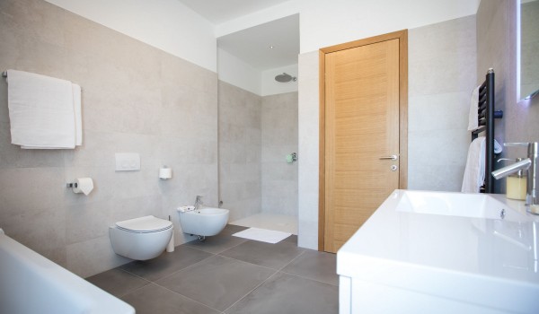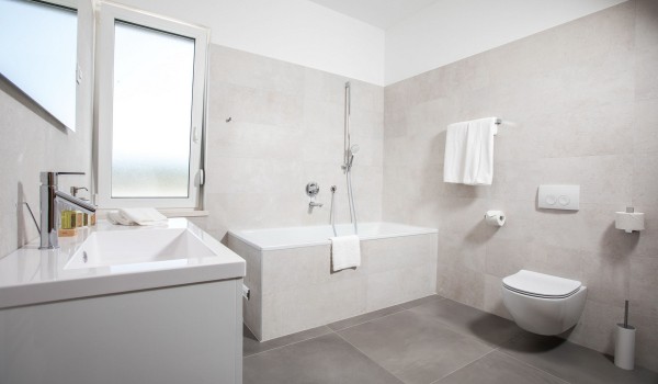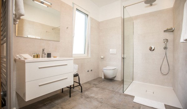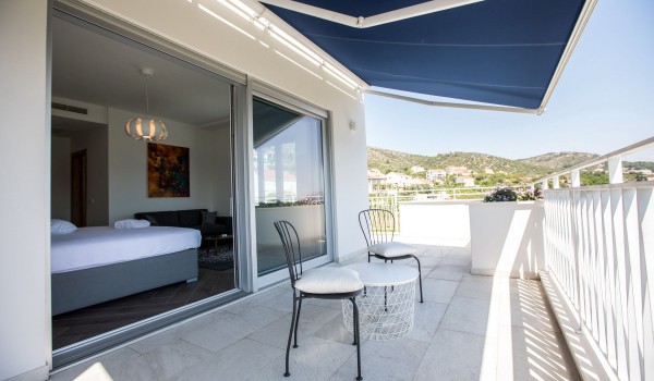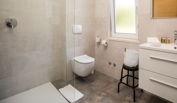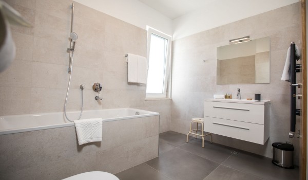 Auf der ersten Etage verfügt die dalmatinische Luxusviilla Orasac Home Escape über 3 Zimmer mit Kingsize-Betten und ein Zimmer mit zwei Einzelbetten. Jedes Zimmer hat ein eigenes Badezimmer (2 en suite mit Badewanne und Dusche und die restlichen 2 en suite mit Dusche).