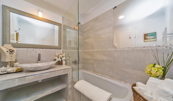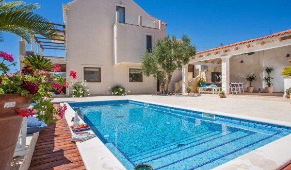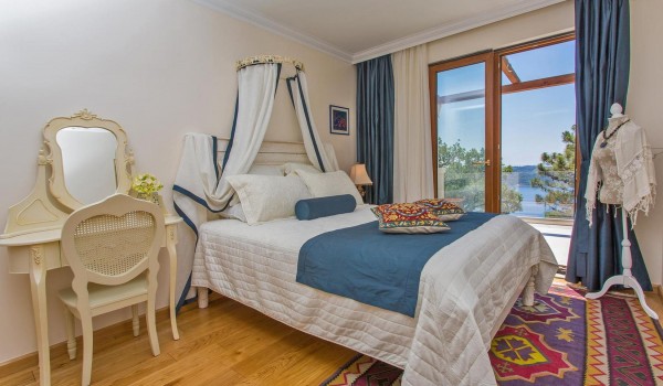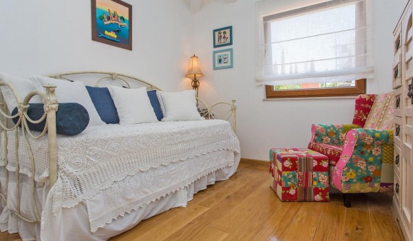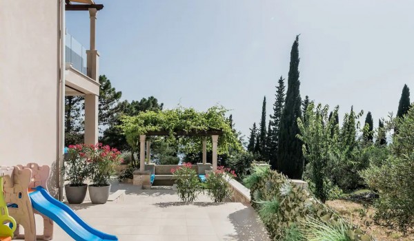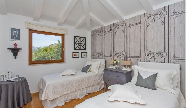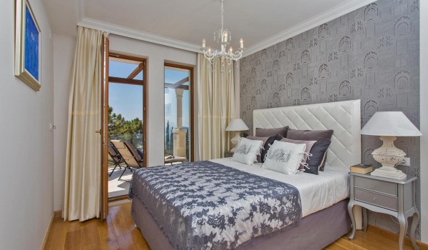 Über schöne Marmortreppen gelangen Sie in den ersten Stock, wo sich 5 Schlafzimmer befinden. Drei Schlafzimmer verfügen über Queensize-Betten mit eigenen Badezimmern mit Badewanne und zwei Zimmer sind kleiner, eines mit zwei Einzelbetten und das andere mit einem ausziehbaren Einzelbett und einem gemeinsamen Badezimmer. Drei Schlafzimmer mit Queensize-Betten haben Zugang zu einer Terrasse mit Sitzbereich, wo Sie Ihren Morgenkaffee genießen und die spektakuläre Aussicht auf die mediterrane Landschaft und die Adria bewundern können.