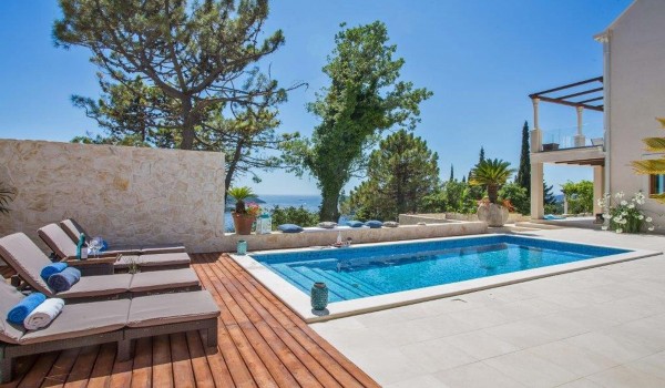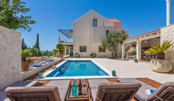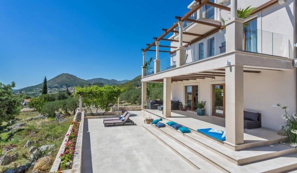 Die luxuriöse Villa Orasac Sweet Life mit Pool liegt auf einem Hügel, nur 800 m vom Meer entfernt in Orasac und 10 km vom Zentrum von Dubrovnik.