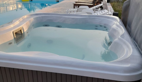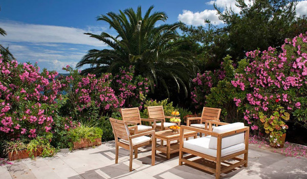 Vom Hauptobjekt des Ferienhauses für Urlaub mit Familie und Freunden führen gut gepflegte Wege zu einem erhöhten Teil des Grundstücks, wo sich ein privater Swimmingpool, eine Sommerhacienda mit Sommerküche, Grill, Weinbar und Tisch befinden. Der Pool ist von Liegestühlen umgeben, die zum Sonnenbaden und Entspannen in einer wunderschönen Umgebung einladen. Mehrere Gehwege führen vom Gebäude zu 3 Pavillons, die mit Möbeln zum Ausruhen ausgestattet sind, sowie zum Kiesstrand und zum Meer.