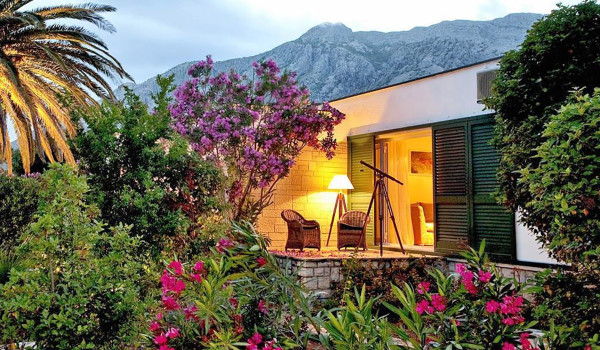 Die Villa Orebić zur Miete in Strandnähe befindet sich direkt am Ortseingang von Orebić. Das große Grundstück, das sich über 12.000 m² erstreckt, ist mit üppiger mediterraner Vegetation, zahlreichen luxuriösen hundertjährigen Palmen, Oliven, Feigen, Rosen und vielen anderen Arten wunderschöner Blumen sowie beleuchteten Gehwegen, die zur Villa führen, geschmückt, Pool, Kiesstrand und das Meer. Vom Eingang zum Grundstück der Ferienvilla führen gut ausgebaute Wege zum Parkplateau mit 5 Stellplätzen, aber auch zum zur Erholung vorgesehenen Teil auf dem Betonplateau.