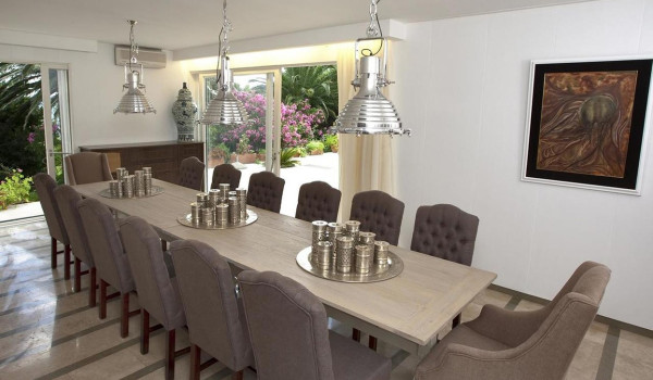 Diese Villa am Meer zur Miete und zum Urlaub mit Freunden und Familie besteht aus dem zentralen Teil, dem linken Flügel und dem rechten Flügel auf 300 m2 Innenfläche, während sich das Grundstück über 12.000 m2 erstreckt.