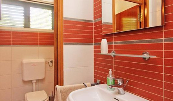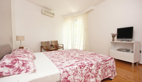 Im linken Flügel dieser Ferienvilla auf Pelješac befinden sich 2 klimatisierte Doppelzimmer mit Sat-TV. Jedes der Zimmer verfügt über ein separates Badezimmer mit Dusche. In diesem Teil gibt es auch 2 zusätzliche Doppelzimmer mit Klimaanlage und SAT-TV, die zu einem Familienzimmer verbunden werden können, wo sie sich ein Badezimmer mit Dusche teilen.