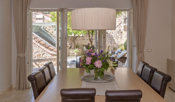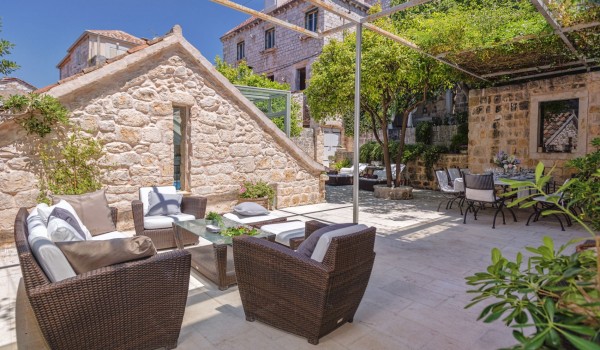 Das Anwesen dieser kroatischen Ferienvilla am Meer besteht aus einem Barockpalast und einem mittelalterlichen gotischen Haus. Es ist in drei Ebenen unterteilt (niedriges Erdgeschoss, Erdgeschoss und erster Stock - Dachgeschoss), die durch die original restaurierte Treppe verbunden sind.