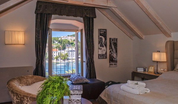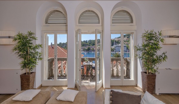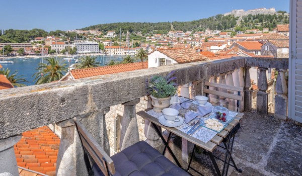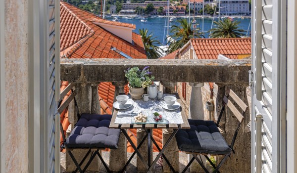 Die besondere Lage dieser Ferienresidenz direkt am Meer ermöglicht Ihnen einen unvergesslichen Blick auf die Uferpromenade, die Schiffe im Hafen, die Festung Fortica und eine Inselgruppe in der Nähe der Hvar-Pakleni-Inseln. Dieses prächtige Herrenhaus von großem historischen Wert wurde 1612 im Barockstil erbaut und steht heute unter dem Schutz des Instituts für Denkmalschutz.