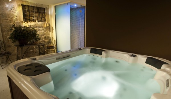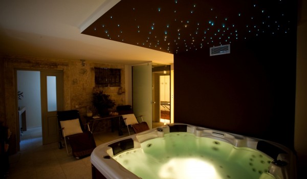 Die Luxusvilla zur Miete mit 5 Schlafzimmern am Meer verfügt auch über einen Wellnessbereich mit Pool, Whirlpool, Sauna und Massageraum.