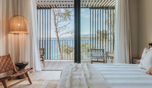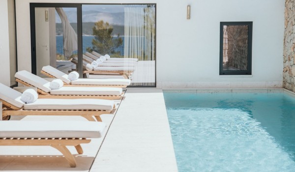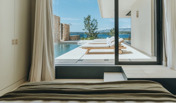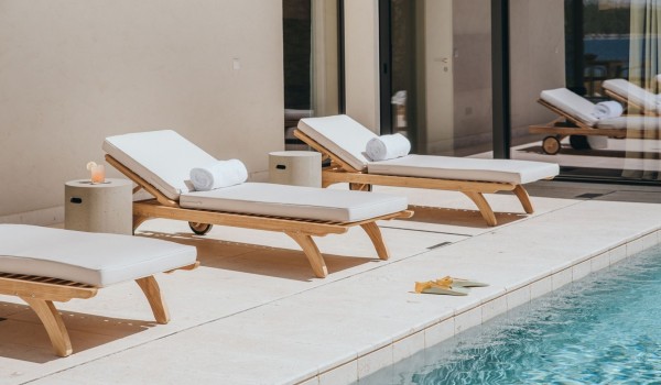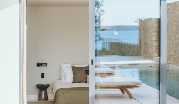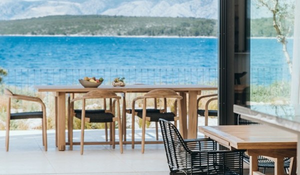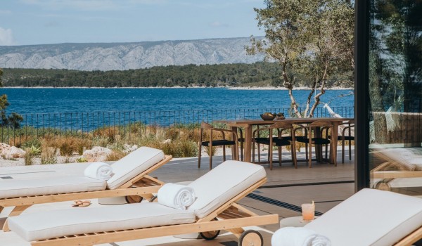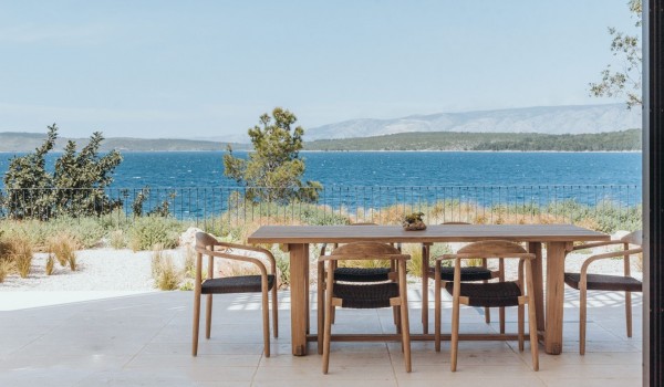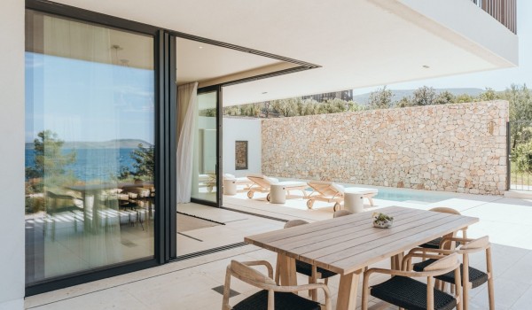 Durch das Betreten der Villa, öffnen sich Ihnen die Türen der absoluten Ruhe und des einzigartigen Traumurlaubs. Eine von adriatischem Grün umgebene Holztreppe führt zum Eingang und zur Terrasse der Luxusvilla Lindeza. Ein Holzboden erstreckt sich über die gesamte Terrasse, die eine wahre Paradiesoase ist. Während des Schwimmen im beheizten Pool von 31 m2, der einen wunderschönen Blick auf die Bucht Maslinica bietet, haben Sie den Eindruck sich mit dem Meer, dem Himmel und dem Pinienwald zu verschmelzen. Neben dem Pool verfügt diese detailreiche Terrasse über einen Wohnbereich im Freien mit einem Esstisch und einer Außendusche. Die Terrasse der Luxusvilla Lindeza ist eine wahre Oase für einen perfekten Nachmittag den Sie mit Ihren Lieblingsbüchern oder durch Geselligkeit und der Zubereitung lokaler Köstlichkeiten genießen können.