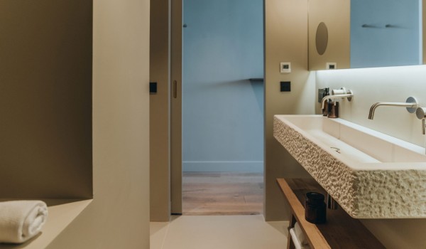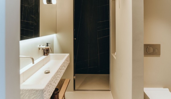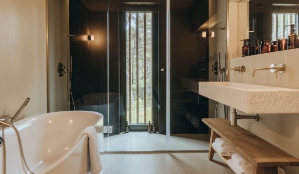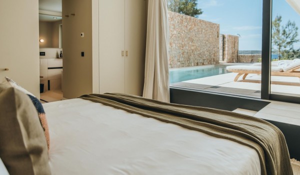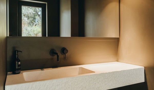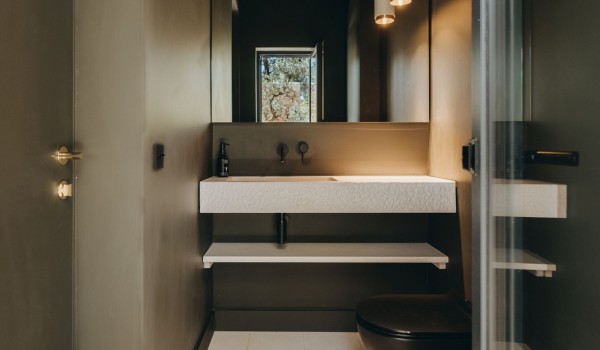 Die Schlafzimmer der Luxusvilla sind mit höchster Qualität ausgestattet und bieten totale Privatsphäre. Ein Schlafzimmer befindet sich im Erdgeschoss und hat einen privaten Eingang. Dieses Schlafzimmer mit „en suite“ Badezimmer verfügt über eine Dusche, eine prächtige Badewanne aus Stein und einem Waschbecken. Auf dieser Etage ist ebenfalls eine Toilette vorfindbar.