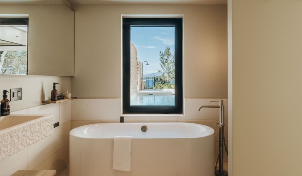 Die restlichen 3 Schlafzimmer befinden sich auf der ersten Etage. Zwei Zimmer verfügen über Kingsize-Betten und eigenes luxuriöses Badezimmer mit ebenerdiger Dusche. Ein Zimmer hat ein Doppelbett und ist ideal für zwei Personen gedacht, sowie ein eigenes Badezimmer mit ebenerdiger Dusche und Badewanne.