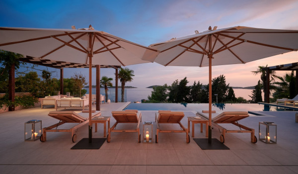 Die Luxusvilla Hvar Deluxe Palace 1 besteht aus einer großzügigen Außenterrasse, die mit einem Pool, einer Außendusche, Sonnenliegen und einem Sitzbereich ausgestattet ist. Zudem finden Sie hier auch einen Grill und einen großen Esstisch für 10 Personen.