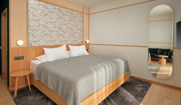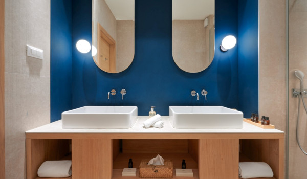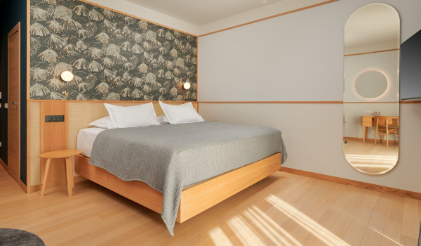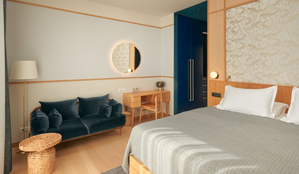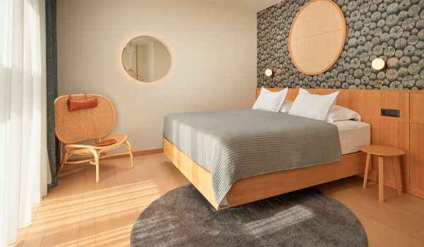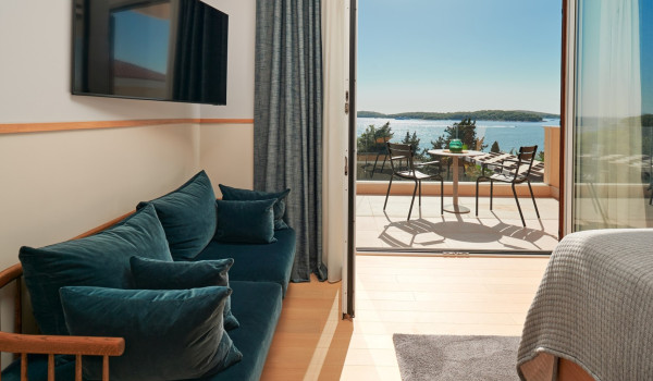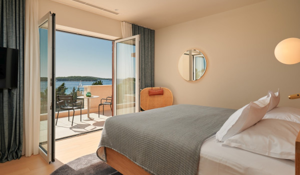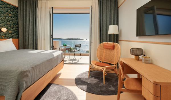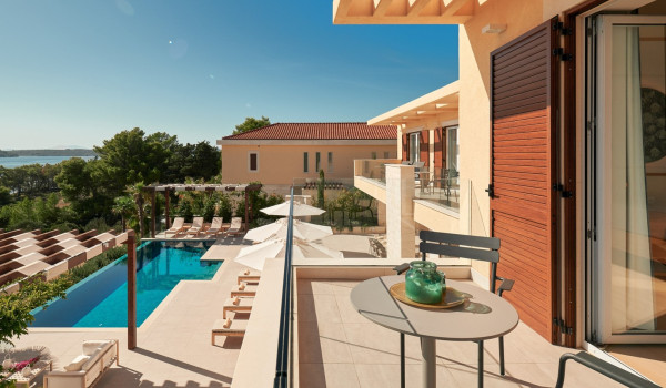 Auf der zweiten Etage des Hauses für den Urlaub, wo sich 4 Schlafzimmer mit einem Kingsize-Bett und einem eigenen Badezimmer befinden. Alle Zimmer in der Villa verfügen über einen privaten Balkon, der mit einer Sitzecke mit spektakulärem Blick auf die umliegende Natur ausgestattet ist die blaue Adria.