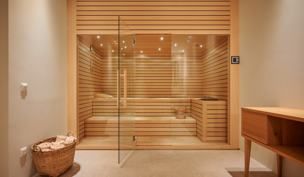 Die Gäste dieser Luxusvilla am Strand haben Zugang zu einer Sauna im Untergeschoss der Villa.