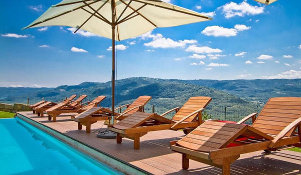 The luxury villa Stone Paradise Motovun with a private pool, jacuzzi and sauna is located in the small Istrian medieval town of Motovun, which has long been a very attractive and popular tourist destination in Istria. This beautiful luxury villa for vacation and rent is located 3 km from the center of Motovun, 71 km from Pula, 54 km from Rovinj.