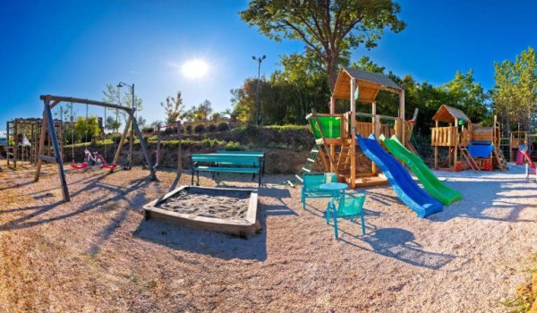 The distance of this luxury villa with kids' playground Stone Paradise Motovun from the nearest beach is 20 km, from restaurants, bars, and shops 2 km, and from the airport in Pula 77 km.