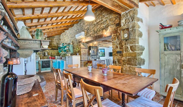 The land of this luxurious Istrian holiday home with jacuzzi and sauna covers 30 000 m2, of which 600 m2 is the residential part of this private villa for vacations in Croatia. This beautiful unique Motovun villa for rent with an outdoor spacious pool, consists of the ground floor, first, and second floor.