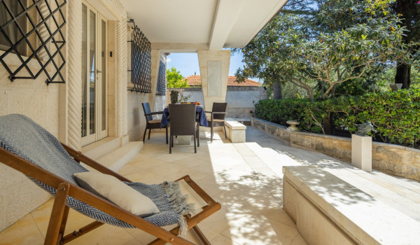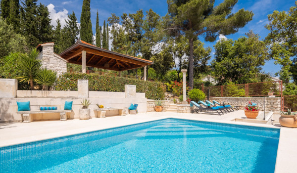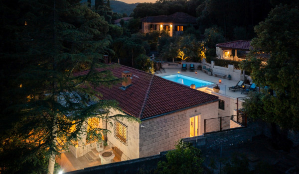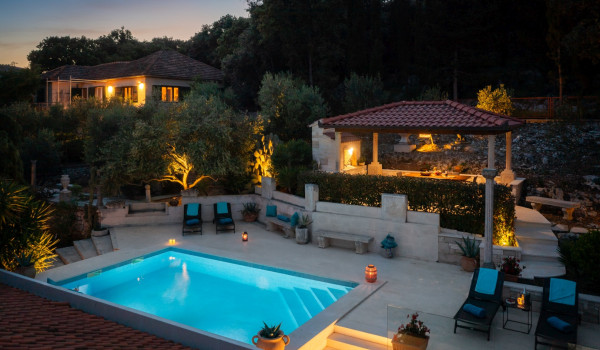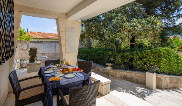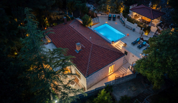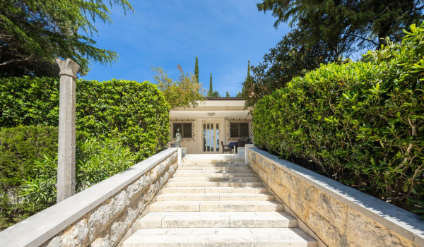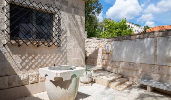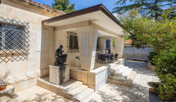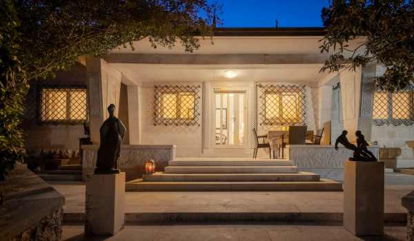 Der Bau des Hauses wurde vom Großvater des Eigentümers begonnen, der viele Jahre mit dem berühmten kroatischen Bildhauer Ivan Meštrović zusammenarbeitete. Jeder Stein wurde von Hand bearbeitet, und die Bauphasen erstreckten sich über Generationen hinweg – diese Villa erzählt somit die Geschichte einer Familie und stellt ein echtes Stück Geschichte dar.