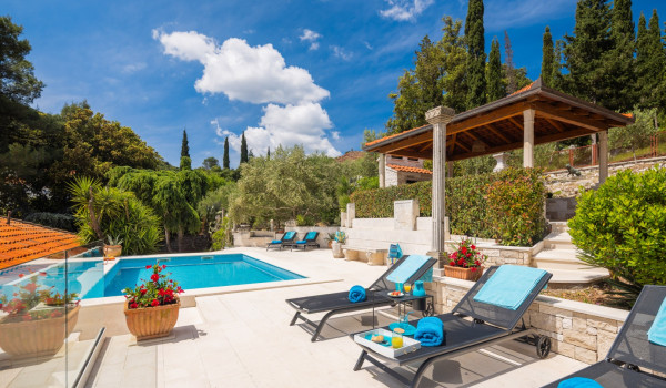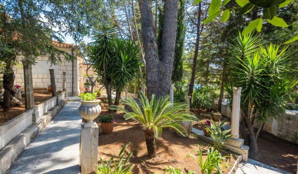 Luxusvilla Korcula Timeless mit privatem Garten entfernt ist ein wahrhaft einzigartiges Haus mit einem liebevoll gestalteten Garten voller mediterraner Pflanzen und Bäume. Dieses Steinhaus mit nur einem Stockwerk befindet sich auf einem Grundstück von 4800 m², das in drei separate Bereiche unterteilt ist: ein großer gepflegter Garten rund ums Haus, ein Entspannungs- und Unterhaltungsbereich mit einem 30 m² großen Swimmingpool, sowie ein Abschnitt hinter dem Pool und dem Olivenhain, in dem vor 40 Jahren Zypressen gepflanzt wurden. Die Villa liegt nur 40 m vom Meer in der Bucht Žrnovska Banja und 3 km vom Zentrum von Korčula entfernt.