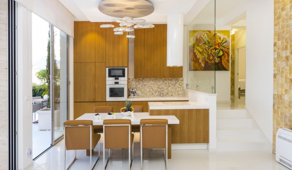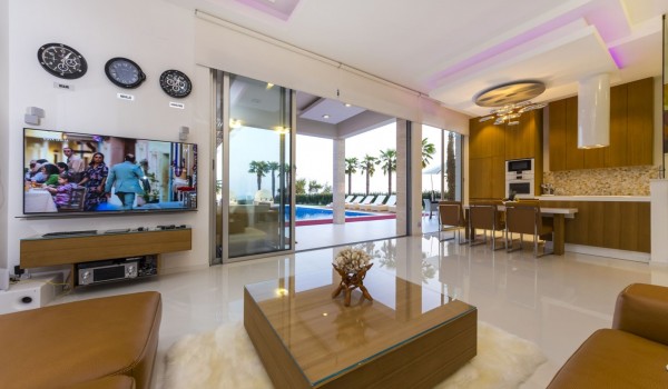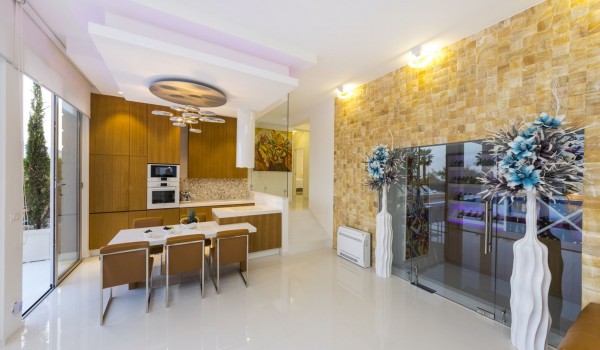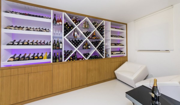 Beim Betreten durch die Schiebewände der Glastür gelangen Sie in ein attraktives Wohnzimmer, das mit Möbeln und Dekorationen im modernen und exklusiven Design ausgestattet ist. Ein großes Ledersofa, ein Designer-Kaffeetisch, Kunstgemälde an der Wand sowie ein Samsung Plasma-TV machen diese Ecke perfekt für entspannte Nachmittage. Es ist auch mit einem Bose Surround-System und einer Hi-Fi Musikanlage ausgestattet, um die ruhigen Melodien Ihrer Lieblingsmusik zu genießen. Das Wohnzimmer ist Teil eines hellen und luftigen offenen Konzepts, das mit einem Esszimmer und einer Küche kombiniert ist. Die Küche ist voll ausgestattet mit hochwertigen Bosch-Küchengeräten. Auch der Weinkeller, der eine Auswahl an exzellenten kroatischen Weinen zur Verkostung bietet und durch eine Glastür mit dem Wohnzimmer verbunden ist, hat hier seinen Platz gefunden.