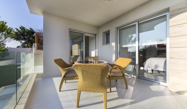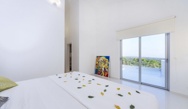 Die Treppen neben der Küche führen in das erhöhte Erdgeschoss, wo sich zwei Schlafzimmer befinden, beide ausgestattet mit Kingsize-Betten und en-suite Badezimmern im anspruchsvollen Design mit Dusche sowie privaten Terrassen mit wunderschöner Aussicht auf die endemische Flora.