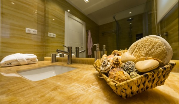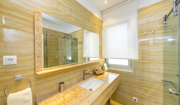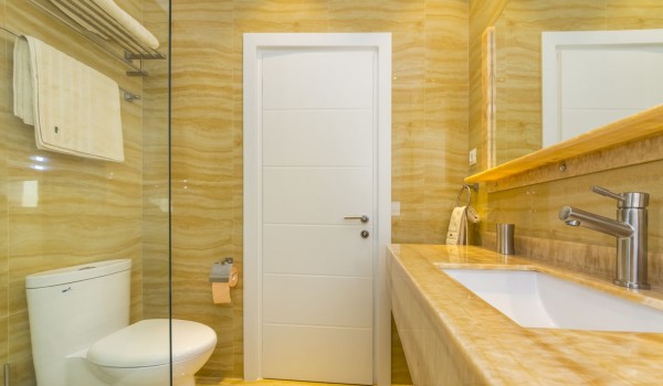Die erste Etage der Villa Hidden Hills Pag ist ebenfalls über Treppen erreichbar, wo sich eine Toilette und der Haupteingang zur Villa befinden.