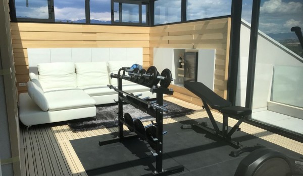 Auf der zweiten Etage der Villa Hidden Hills Pag finden Sie auch ein voll ausgestattetes Fitnessstudio. Es befindet sich in einem verglasten Raum, in dem Sie beim Training eine Panoramaaussicht auf das Meer genießen können. Es gibt auch eine Sauna zur vollständigen Entspannung und Entgiftung sowie zwei zusätzliche Betten.