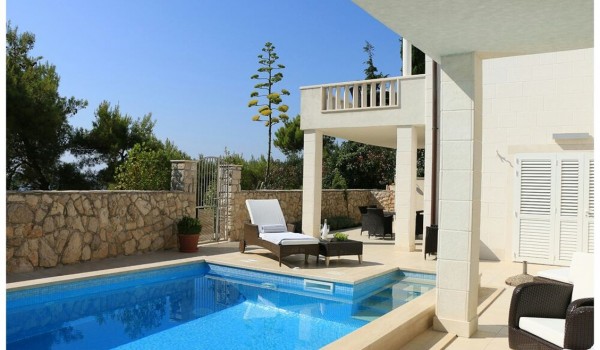 Wenn Sie das wunderschöne Anwesen vom Meer aus betreten, werden Sie von einem großen und wunderschön angelegten Garten und einem atemberaubenden Poolbereich begrüßt. Hier erleben Sie das wahre mediterrane Wohngefühl. Umgeben vom typisch schönen dalmatinischen Grün werden Sie sich wie in einer Oase des Friedens und der Ruhe fühlen. Viele schöne und unvergessliche Momente im Hofbereich, der mit Sitzgelegenheiten im Freien zum Entspannen ausgestattet ist, können Sie in Ruhe mit Ihren Lieben verbringen.