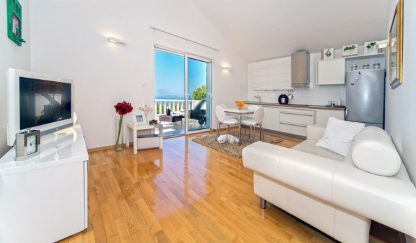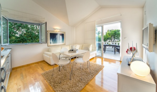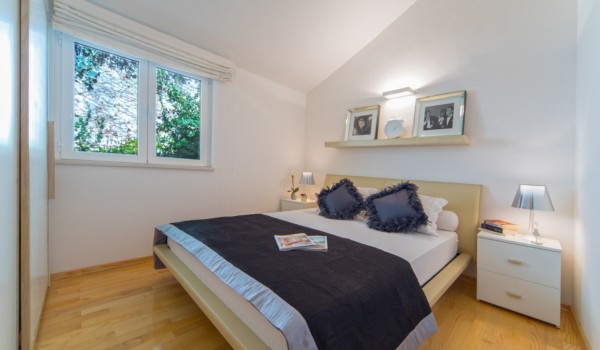 Vom atemberaubenden Garten dieser Villa für den Urlaub am Strand gelangen Sie durch die Glasfronttüren im Erdgeschoss in den großzügigen, eleganten und sensationellen Wohn-Essbereich mit einer modernen, voll ausgestatteten Küche. Die erstaunliche Gegend ist perfekt, um eine tolle Zeit zu verbringen und gemeinsam mit Freunden die lokale dalmatinische Küche zu genießen. Auf der gleichen Etage befinden sich zwei gemütliche und charmante Schlafzimmer mit Doppelbetten und ein modernes Badezimmer mit Dusche.