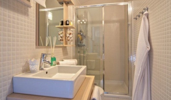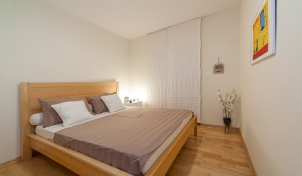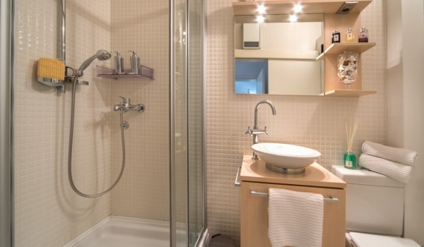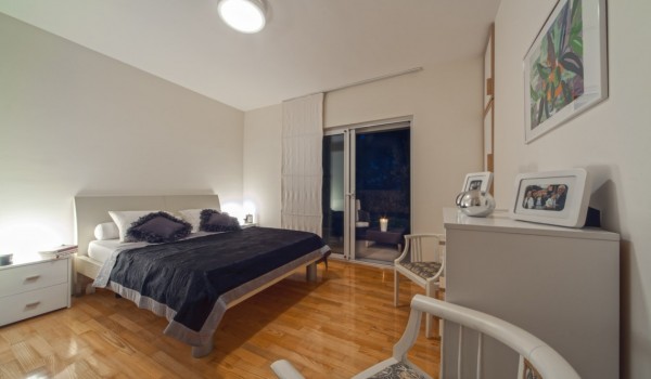 Das Apartment am Meer verfügt über zwei separate Schlafzimmer, eines mit Doppelbett und eines mit zwei Einzelbetten, in denen Sie in vollkommener Ruhe schlafen werden. Hier finden Sie auch ein charmantes Badezimmer mit Dusche.