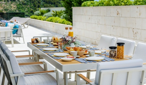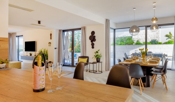 Die Kroatien Luxusvillas Galatea, Thalia und Asteria liegen nebeneinander und bieten die Möglichkeit, größere Gruppen für Hochzeiten, Teambuildings, Familienfeiern und mehr unterzubringen.