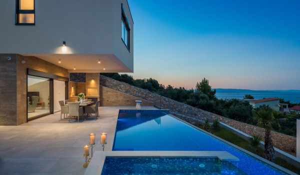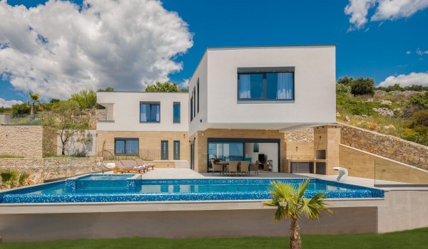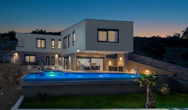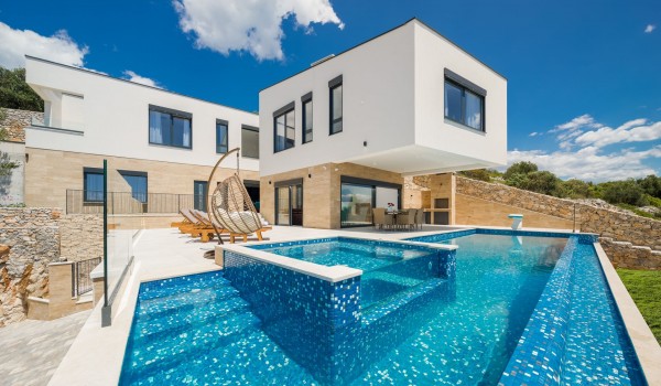 Die kroatische Luxusvilla Ciovo Tresor 2 mit Pool verfügt über 4 Schlafzimmer, 5 Badezimmer und eignet sich für eine luxuriöse Unterkunft von 8.