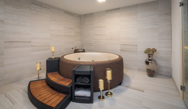 Die luxuriöse Oase für Ruhe und Entspannung mit absoluter Privatsphäre verfügt über einen Infinity-Außenpool, eine Terrasse mit Möbeln zum Ausruhen, einen Außengrill und einen Außenesstisch, einen Whirlpool und eine Sauna.