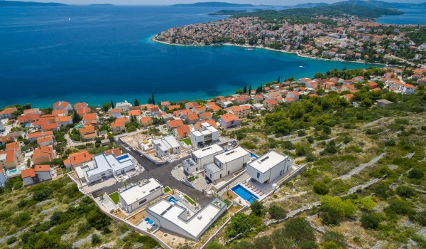 Die Luxusvilla Ciovo Tresor 2 mit Infinity-Pool, der mit einem wunderschönen Blick auf die azurblaue Adria geschmückt ist, befindet sich 5 km vom Zentrum von Trogir und 500 Meter vom Meer entfernt. Die kroatische Luxusvilla Ciovo Tresor 2 für Familienurlaub, eine moderne Villa mit Sauna und Whirlpool, befindet sich im ruhigen Urlaubsort Okrug Gornji auf der Halbinsel Ciovo, in der Nähe aller interessantesten Touristenziele in Mitteldalmatien. Aufgrund seiner idealen Lage, insbesondere der Nähe zum Flughafen Split und zu wunderschönen Stränden, bietet diese moderne und reich ausgestattete architektonische Schönheit auf 300 m2 alles, was Sie für eine vollständige Entspannung benötigen, während Sie die Reize von Trogir, Split und Sibenik erkunden.