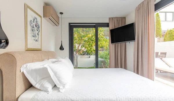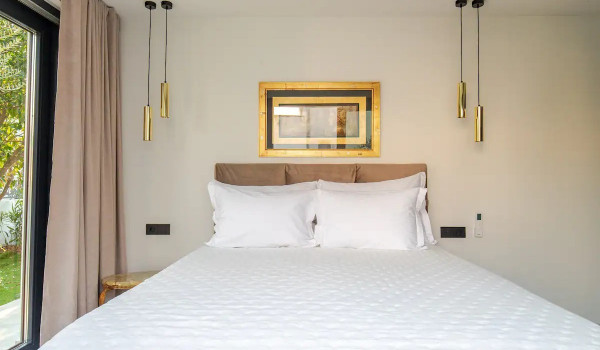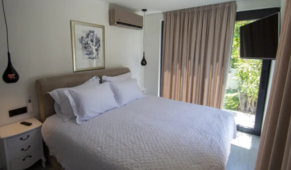 Im ersten Stock der Villa befinden sich drei luxuriöse en-suite Doppelzimmer mit Kingsize-Betten, Fußbodenheizung, LCD-Fernsehern und WLAN-Internet.