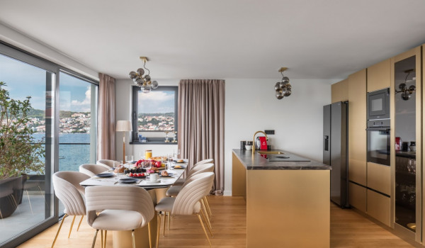 Ein Aufenthalt in dieser brandneuen Strandvilla öffnet die Türen zu Luxus und entführt Sie in ein wunderschönes dalmatinisches Märchen des Lebens am Meer.