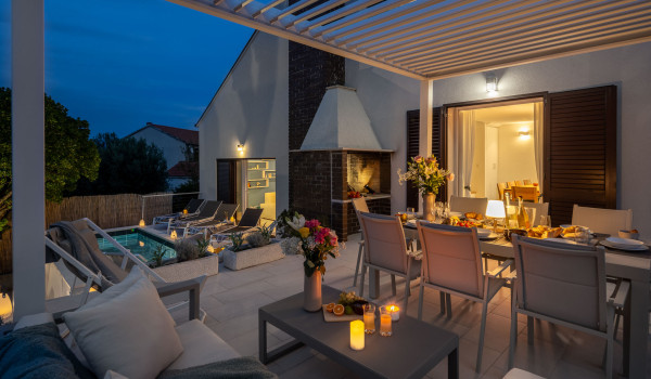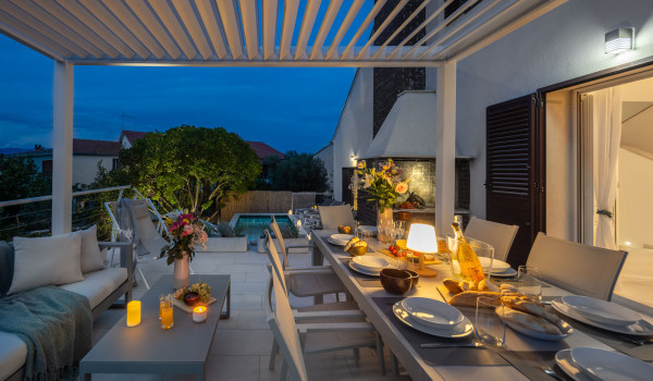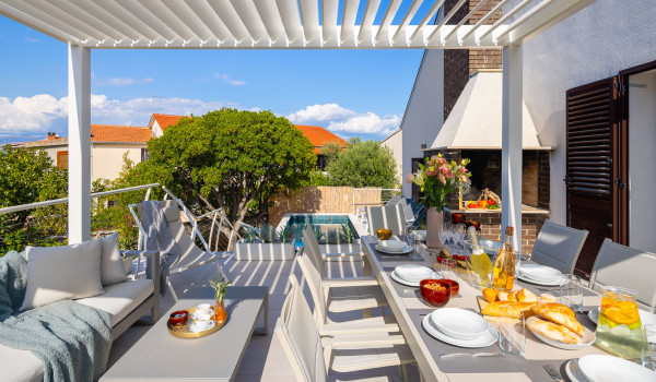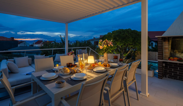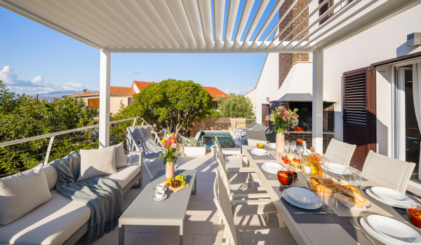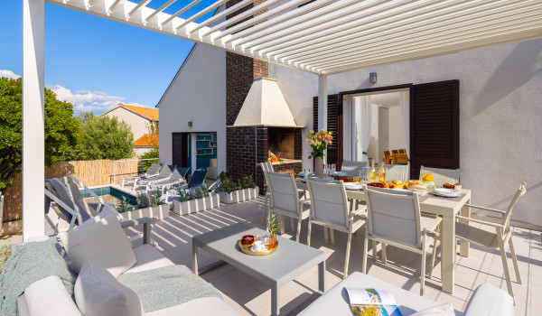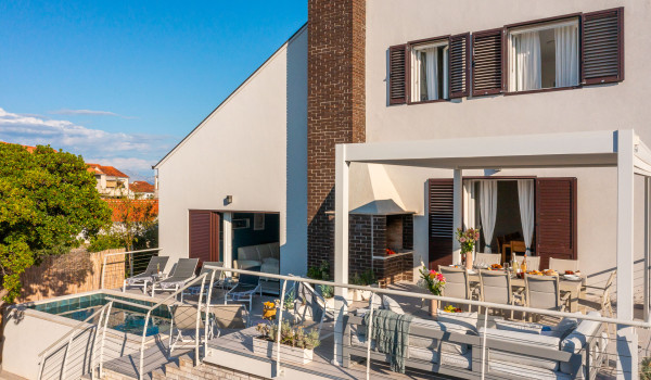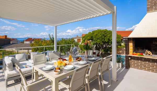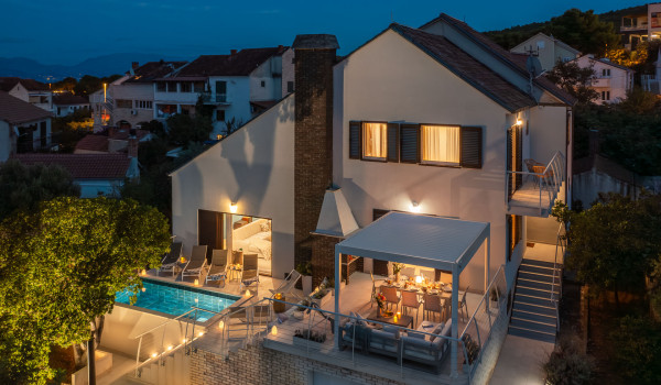 This stunning Dalmatian rental villa, spanning 206m² across two levels, also offers amenities such as a baby crib and a high chair. This Croatian air-conditioned holiday villa is equipped with Wi-Fi, a Sony PlayStation, and private parking.