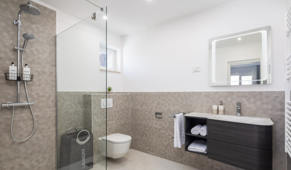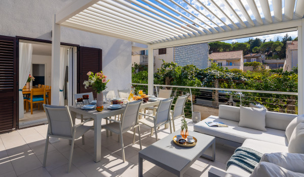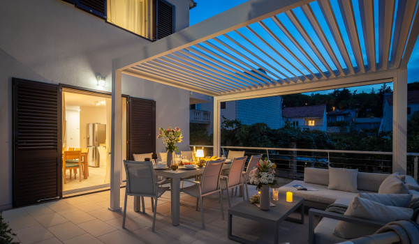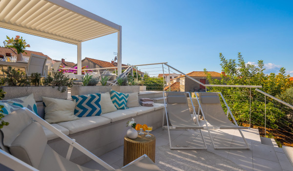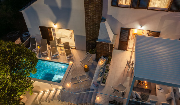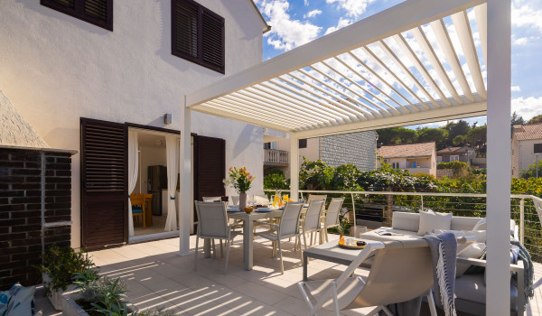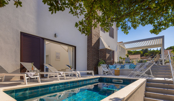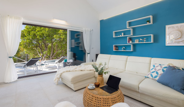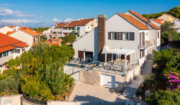 The Croatian luxury holiday and rental villa Mila Supetar includes a living room, modern kitchen, dining room, 4 bedrooms, 5 bathrooms, and is suitable for accommodation of 8 people. The villa also offers private parking.