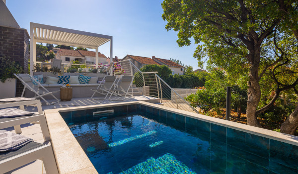 Luxury Villa Mila Supetar with a private pool is located in Supetar, on the island of Brač, just 800m from the centre of Supetar. This luxury family holiday villa features a modern design, allowing you to enjoy the outdoor terrace with a pool and an outdoor seating area, perfect for family gatherings or evening barbecue and cocktails with friends.