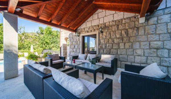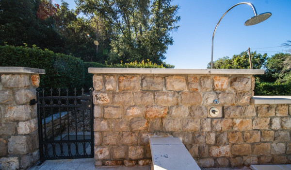 Private Croatian beachfront villa Dubrovnik Oasis for vacation and rent is a unique example of harmonious traditional architecture, implemented with modern technology. The exterior of the luxurious villa by the sea Dubrovnik Oasis is dominated by numerous stone details, framed with a lush green area and carefully cultivated exotic plants. Luxury pet-friendly villa Dubrovnik Oasis resembles a small island of beauty, within which you will find all the necessary elements for a perfect stay.