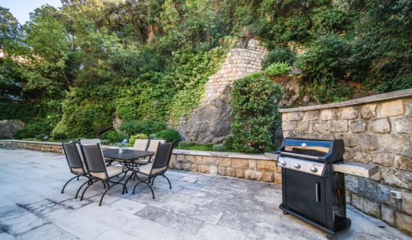 The luxurious holiday rental with a sea view and a private pool Dubrovnik Oasis is fully air-conditioned and equipped with underfloor heating. This luxurious pet-friendly villa is equipped with SAT/TV, telephone, and internet connection. The Dubrovnik seaside villa with private parking has a fully equipped kitchen with an oven, stove, hood, refrigerator with freezer, dishwasher, washing machine and dryer, microwave, kettle, mixer, toaster, coffee machine, iron, ironing board, safe, hair dryer, baby cot and feeder available on request, balcony, terraces, swimming pool, fireplace, garden and seating sets, deckchairs, and umbrellas, garden, and barbecue. This private seafront villa for rent in Dubrovnik has a secured parking space for one car.