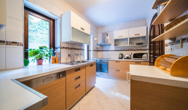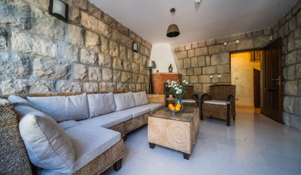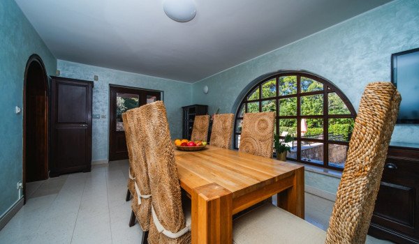 On the ground floor of the luxury villa for family vacations in Dubrovnik, there is a modern, fully equipped kitchen, dining room, spacious living room with fireplace, reception room, guest toilet, and laundry room with washing machine and dryer.