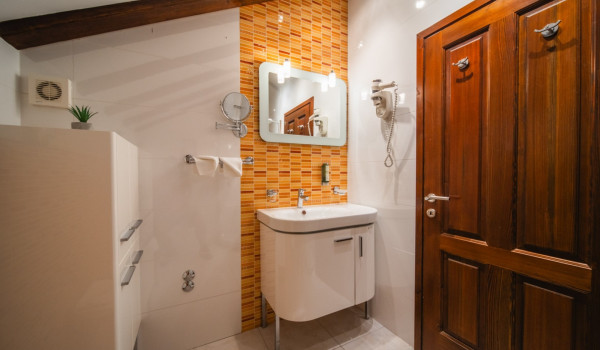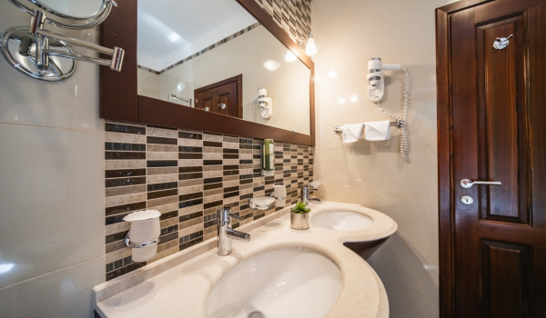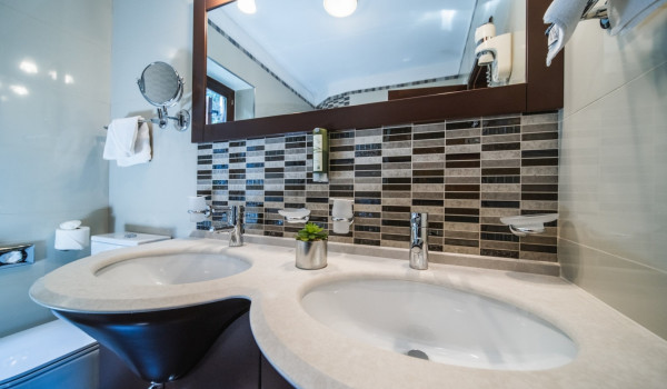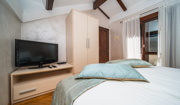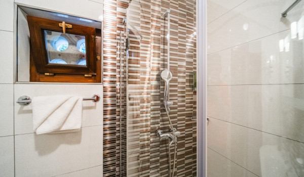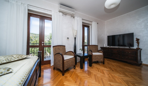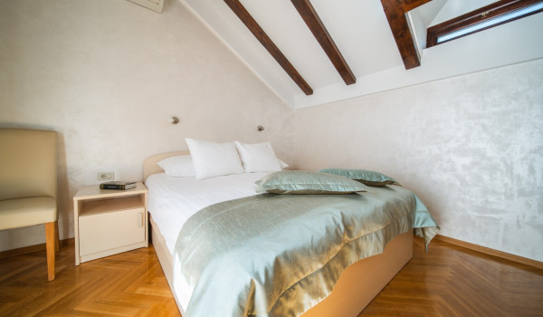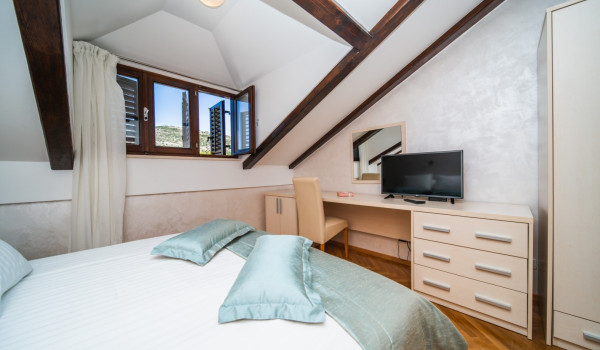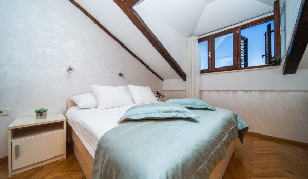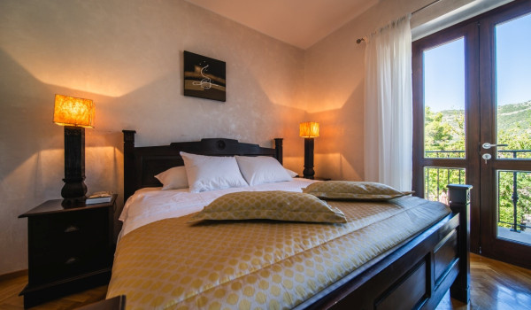 On the first floor of this private villa for rent by the sea, Dubrovnik Oasis, there is one double room with a double bed and a private bathroom with a shower, and another double room equipped with a double bed and a private bathroom, with a jacuzzi hot tub and a shower.