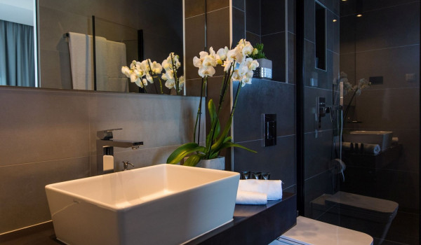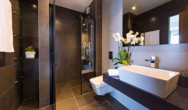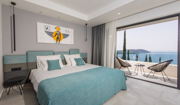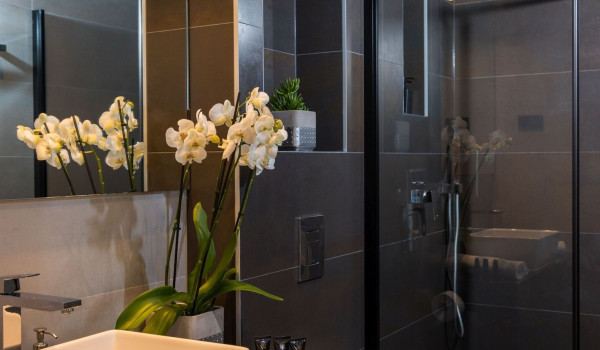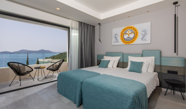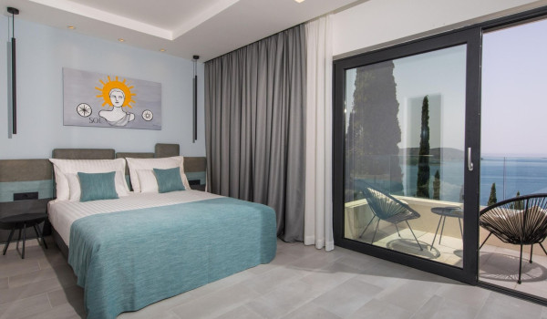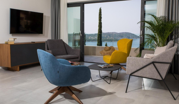 Internal stairs lead to the first floor of this exclusive Croatian villa for rent in Dubrovnik, where there are 3 bedrooms with en-suite bathrooms, balconies, and sofas. The sea view from them will surely delight you. Two bathrooms are equipped with showers, and the third has a shower and bathtub. There is also a private gym on this floor.