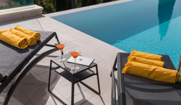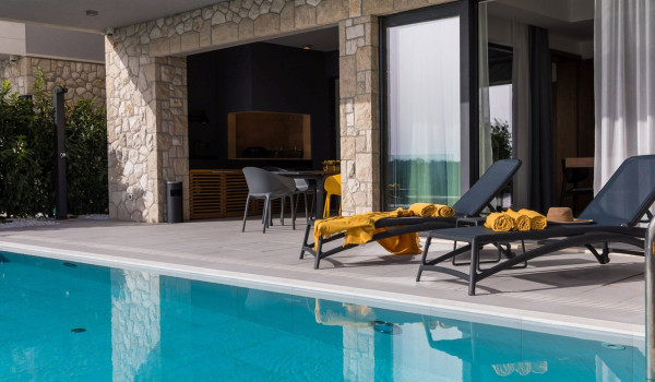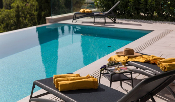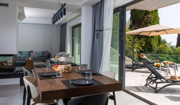 Arriving in the courtyard of the Dubrovnik luxury Villa Voyage, there is a private heated pool (24 m2) which is surrounded by sun loungers overlooking the crystal clear sea. Next to the pool, on the outside, there is a dining table with a Dalmatian barbecue to enjoy the prepared delicacies.