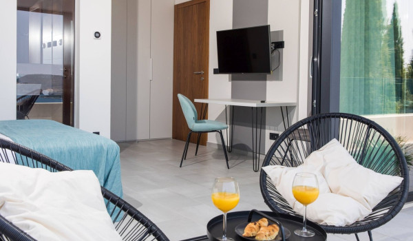 On the second floor of the luxury holiday rental Villa Voyage, there is a living room with a sofa, armchairs, and an LCD TV, as well as two modern bedrooms with en-suite bathrooms. The bathrooms are equipped with showers. The bedrooms have access to the balcony where you can welcome the sunsets with a glass of Croatian wine.