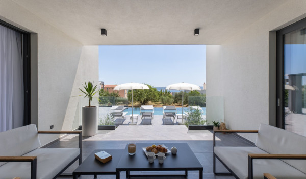 Each room inside this private modern rental villa is air-conditioned, and there is also the option of underfloor heating.