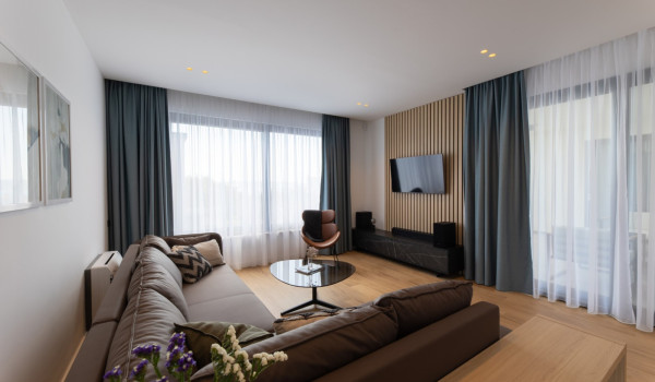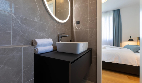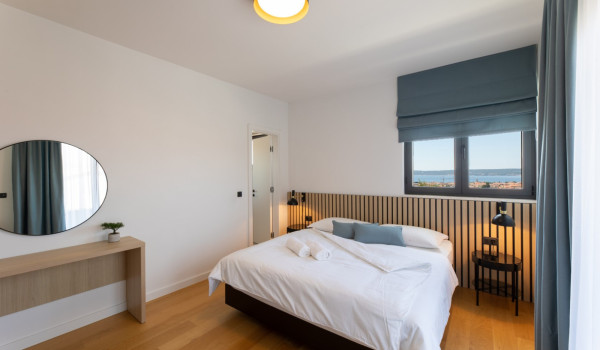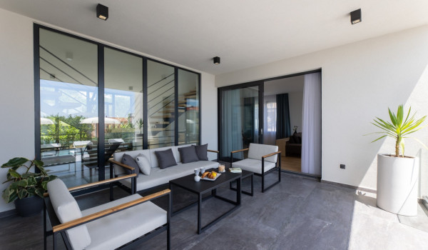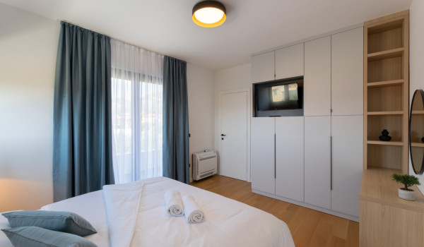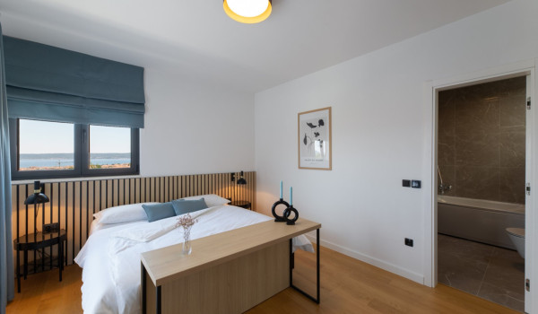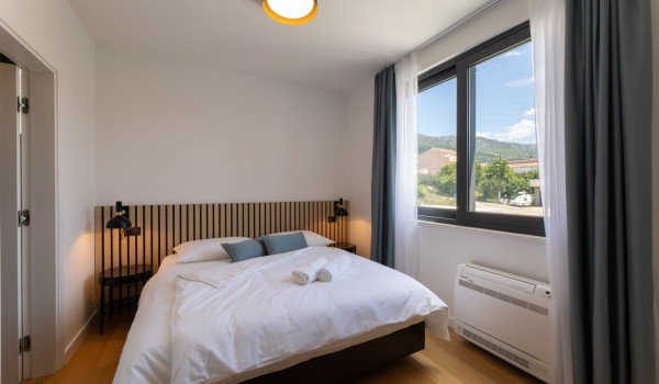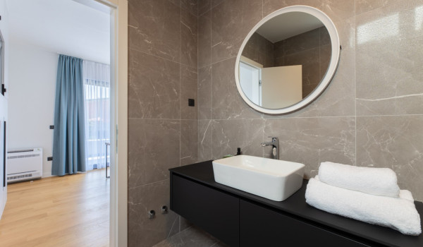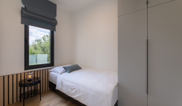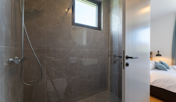 On the first floor of this Croatian luxury villa for vacation with friends, there are 4 bedrooms with private bathrooms, two on the east side and the remaining two on the west side. Each bedroom has access to a terrace with a magical view of the surroundings and the sunset. In the four bedrooms, there are king-size beds (180*200), while the fifth one has a single bed (90*200). In four bathrooms, there is a walk-in shower, and in one, there is a bathtub and other toiletries.