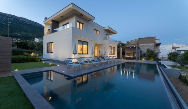 Luxury villa Doma Kastel Stari with an outdoor heated pool, sauna, and gym is located in Kastel Stari, one of the seven places that make up the town of Kastela. Upon entering the property of this Croatian private luxury villa, with a total size of 1000 m2, what immediately takes your breath away is the enchanting view of the sea and the surrounding islands, while the living area of the villa itself is 300 m2.